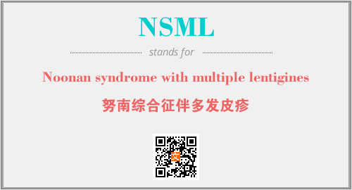 上述内容是“Noonan syndrome with multiple lentigines”作为“NSML”的缩写,解释为“努南综合征伴多发皮疹”时的信息,以及英文缩略词NSML所代表的英文单词,其对应的中文拼音、详细解释以及在英文中的流行度和相关分类、应用领域及应用示例等。