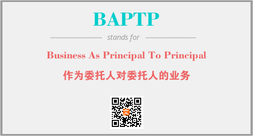 上述内容是“Business As Principal To Principal”作为“BAPTP”的缩写,解释为“作为委托人对委托人的业务”时的信息,以及英文缩略词BAPTP所代表的英文单词,其对应的中文拼音、详细解释以及在英文中的流行度和相关分类、应用领域及应用示例等。