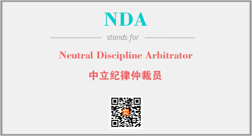 以上为Neutral Discipline Arbitrator英文缩略词NDA的中文解释,以及该英文缩写在英语的流行度、分类和应用领域方面的信息。