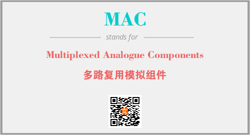 上述内容是“Multiplexed Analogue Components”作为“MAC”的缩写,解释为“多路复用模拟组件”时的信息,以及英文缩略词MAC所代表的英文单词,其对应的中文拼音、详细解释以及在英文中的流行度和相关分类、应用领域及应用示例等。