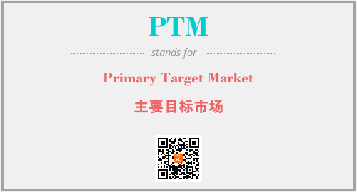 上述内容是“Primary Target Market”作为“PTM”的缩写,解释为“主要目标市场”时的信息,以及英文缩略词PTM所代表的英文单词,其对应的中文拼音、详细解释以及在英文中的流行度和相关分类、应用领域及应用示例等。