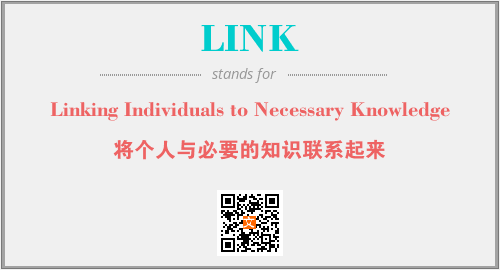 上述内容是“Linking Individuals to Necessary Knowledge”作为“LINK”的缩写,解释为“将个人与必要的知识联系起来”时的信息,以及英文缩略词LINK所代表的英文单词,其对应的中文拼音、详细解释以及在英文中的流行度和相关分类、应用领域及应用示例等。