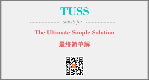 上述内容是“The Ultimate Simple Solution”作为“TUSS”的缩写,解释为“最终简单解”时的信息,以及英文缩略词TUSS所代表的英文单词,其对应的中文拼音、详细解释以及在英文中的流行度和相关分类、应用领域及应用示例等。