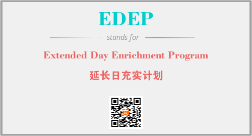 上述内容是“Extended Day Enrichment Program”作为“EDEP”的缩写,解释为“延长日充实计划”时的信息,以及英文缩略词EDEP所代表的英文单词,其对应的中文拼音、详细解释以及在英文中的流行度和相关分类、应用领域及应用示例等。