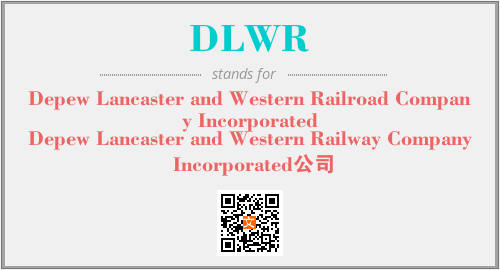 上述内容是“Depew Lancaster and Western Railroad Company Incorporated”作为“DLWR”的缩写,解释为“Depew Lancaster and Western Railway Company Incorporated公司”时的信息,以及英文缩略词DLWR所代表的英文单词,其对应的中文拼音、详细解释以及在英文中的流行度和相关分类、应用领域及应用示例等。