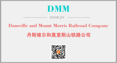 英文缩略词“DMM”经常作为“Dansville and Mount Morris Railroad Company”的英文缩写来使用,中文表示:“丹斯维尔和莫里斯山铁路公司”。本文将详细介绍英文缩写词DMM所代表英文单词,其对应的中文拼音、详细解释以及在英语中的流行度。此外,还有关于缩略词DMM的分类、应用领域及相关应用示例等。