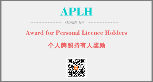 上述内容是“Award for Personal Licence Holders”作为“APLH”的缩写,解释为“个人牌照持有人奖励”时的信息,以及英文缩略词APLH所代表的英文单词,其对应的中文拼音、详细解释以及在英文中的流行度和相关分类、应用领域及应用示例等。