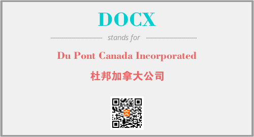 上述内容是“Du Pont Canada Incorporated”作为“DOCX”的缩写,解释为“杜邦加拿大公司”时的信息,以及英文缩略词DOCX所代表的英文单词,其对应的中文拼音、详细解释以及在英文中的流行度和相关分类、应用领域及应用示例等。