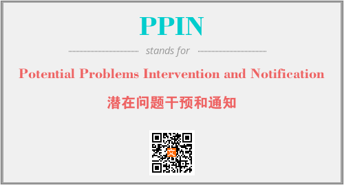 以上为Potential Problems Intervention and Notification英文缩略词PPIN的中文解释,以及该英文缩写在英语的流行度、分类和应用领域方面的信息。