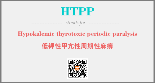 以上为Hypokalemic thyrotoxic periodic paralysis英文缩略词HTPP的中文解释,以及该英文缩写在英语的流行度、分类和应用领域方面的信息。