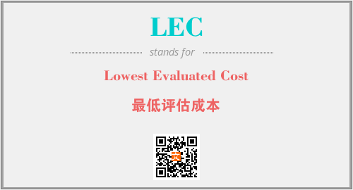 上述内容是“Lowest Evaluated Cost”作为“LEC”的缩写,解释为“最低评估成本”时的信息,以及英文缩略词LEC所代表的英文单词,其对应的中文拼音、详细解释以及在英文中的流行度和相关分类、应用领域及应用示例等。