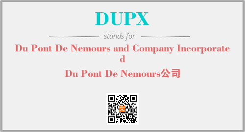 以上为Du Pont De Nemours and Company Incorporated英文缩略词DUPX的中文解释,以及该英文缩写在英语的流行度、分类和应用领域方面的信息。