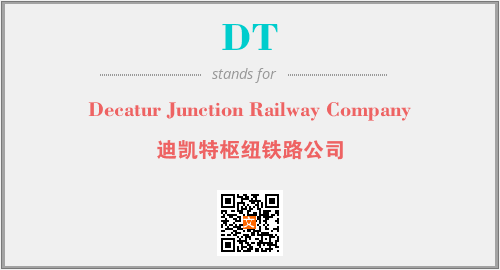 上述内容是“Decatur Junction Railway Company”作为“DT”的缩写,解释为“迪凯特枢纽铁路公司”时的信息,以及英文缩略词DT所代表的英文单词,其对应的中文拼音、详细解释以及在英文中的流行度和相关分类、应用领域及应用示例等。