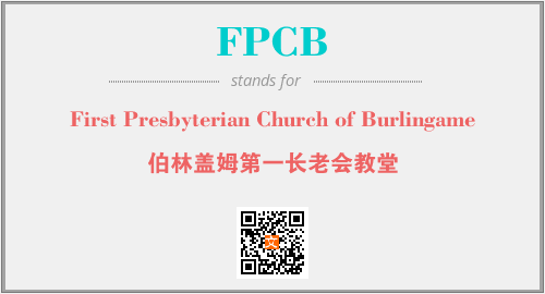 上述内容是“First Presbyterian Church of Burlingame”作为“FPCB”的缩写,解释为“伯林盖姆第一长老会教堂”时的信息,以及英文缩略词FPCB所代表的英文单词,其对应的中文拼音、详细解释以及在英文中的流行度和相关分类、应用领域及应用示例等。