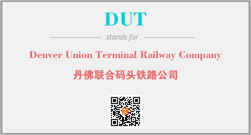 上述内容是“Denver Union Terminal Railway Company”作为“DUT”的缩写,解释为“丹佛联合码头铁路公司”时的信息,以及英文缩略词DUT所代表的英文单词,其对应的中文拼音、详细解释以及在英文中的流行度和相关分类、应用领域及应用示例等。