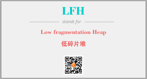 英文缩略词“LFH”经常作为“Low fragmentation Heap”的英文缩写来使用,中文表示:“低碎片堆”。本文将详细介绍英文缩写词LFH所代表英文单词,其对应的中文拼音、详细解释以及在英语中的流行度。此外,还有关于缩略词LFH的分类、应用领域及相关应用示例等。