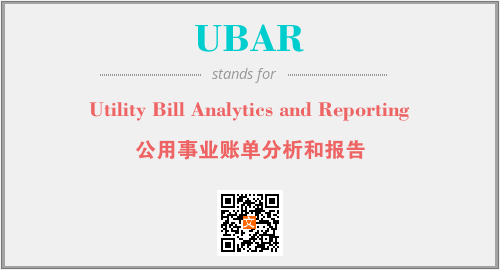 英文缩略词“UBAR”经常作为“Utility Bill Analytics and Reporting”的英文缩写来使用,中文表示:“公用事业账单分析和报告”。本文将详细介绍英文缩写词UBAR所代表英文单词,其对应的中文拼音、详细解释以及在英语中的流行度。此外,还有关于缩略词UBAR的分类、应用领域及相关应用示例等。