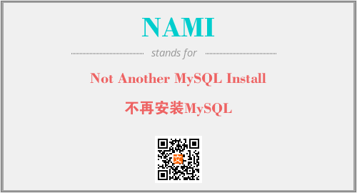 以上为Not Another MySQL Install英文缩略词NAMI的中文解释,以及该英文缩写在英语的流行度、分类和应用领域方面的信息。
