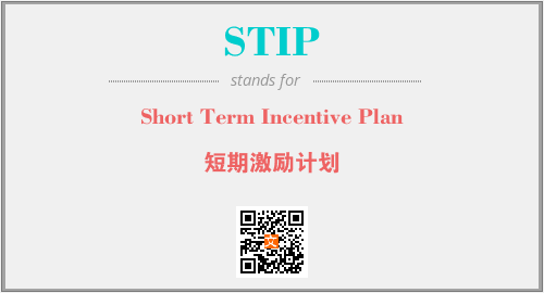 上述内容是“Short Term Incentive Plan”作为“STIP”的缩写,解释为“短期激励计划”时的信息,以及英文缩略词STIP所代表的英文单词,其对应的中文拼音、详细解释以及在英文中的流行度和相关分类、应用领域及应用示例等。