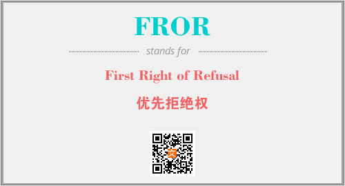 上述内容是“First Right of Refusal”作为“FROR”的缩写,解释为“优先拒绝权”时的信息,以及英文缩略词FROR所代表的英文单词,其对应的中文拼音、详细解释以及在英文中的流行度和相关分类、应用领域及应用示例等。