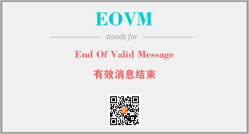 英文缩略词“EOVM”经常作为“End Of Valid Message”的英文缩写来使用,中文表示:“有效消息结束”。本文将详细介绍英文缩写词EOVM所代表英文单词,其对应的中文拼音、详细解释以及在英语中的流行度。此外,还有关于缩略词EOVM的分类、应用领域及相关应用示例等。