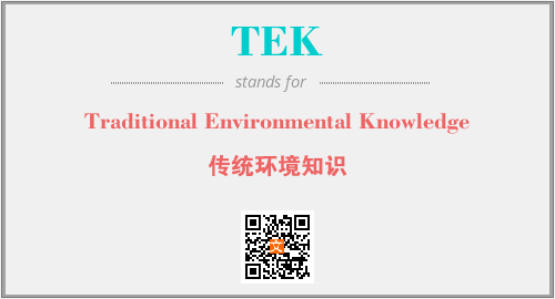 英文缩略词“TEK”经常作为“Traditional Environmental Knowledge”的英文缩写来使用,中文表示:“传统环境知识”。本文将详细介绍英文缩写词TEK所代表英文单词,其对应的中文拼音、详细解释以及在英语中的流行度。此外,还有关于缩略词TEK的分类、应用领域及相关应用示例等。