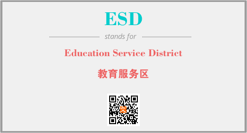英文缩略词“ESD”经常作为“Education Service District”的英文缩写来使用,中文表示:“教育服务区”。本文将详细介绍英文缩写词ESD所代表英文单词,其对应的中文拼音、详细解释以及在英语中的流行度。此外,还有关于缩略词ESD的分类、应用领域及相关应用示例等。