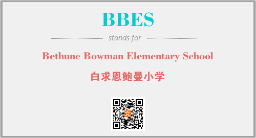 上述内容是“Bethune Bowman Elementary School”作为“BBES”的缩写,解释为“白求恩鲍曼小学”时的信息,以及英文缩略词BBES所代表的英文单词,其对应的中文拼音、详细解释以及在英文中的流行度和相关分类、应用领域及应用示例等。