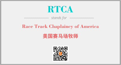 英文缩略词“RTCA”经常作为“Race Track Chaplaincy of America”的英文缩写来使用,中文表示:“美国赛马场牧师”。本文将详细介绍英文缩写词RTCA所代表英文单词,其对应的中文拼音、详细解释以及在英语中的流行度。此外,还有关于缩略词RTCA的分类、应用领域及相关应用示例等。