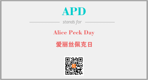 上述内容是“Alice Peck Day”作为“APD”的缩写,解释为“爱丽丝佩克日”时的信息,以及英文缩略词APD所代表的英文单词,其对应的中文拼音、详细解释以及在英文中的流行度和相关分类、应用领域及应用示例等。