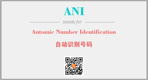 英文缩略词“ANI”经常作为“Automic Number Identification”的英文缩写来使用,中文表示:“自动识别号码”。本文将详细介绍英文缩写词ANI所代表英文单词,其对应的中文拼音、详细解释以及在英语中的流行度。此外,还有关于缩略词ANI的分类、应用领域及相关应用示例等。