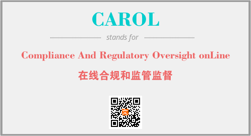 上述内容是“Compliance And Regulatory Oversight onLine”作为“CAROL”的缩写,解释为“在线合规和监管监督”时的信息,以及英文缩略词CAROL所代表的英文单词,其对应的中文拼音、详细解释以及在英文中的流行度和相关分类、应用领域及应用示例等。