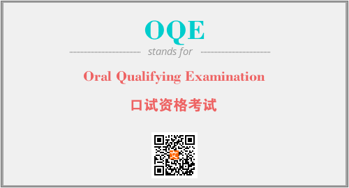 上述内容是“Oral Qualifying Examination”作为“OQE”的缩写,解释为“口试资格考试”时的信息,以及英文缩略词OQE所代表的英文单词,其对应的中文拼音、详细解释以及在英文中的流行度和相关分类、应用领域及应用示例等。