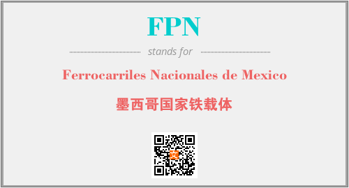 上述内容是“Ferrocarriles Nacionales de Mexico”作为“FPN”的缩写,解释为“墨西哥国家铁载体”时的信息,以及英文缩略词FPN所代表的英文单词,其对应的中文拼音、详细解释以及在英文中的流行度和相关分类、应用领域及应用示例等。