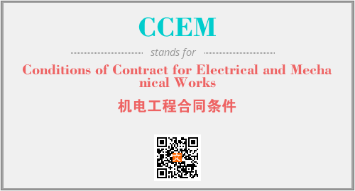 上述内容是“Conditions of Contract for Electrical and Mechanical Works”作为“CCEM”的缩写,解释为“机电工程合同条件”时的信息,以及英文缩略词CCEM所代表的英文单词,其对应的中文拼音、详细解释以及在英文中的流行度和相关分类、应用领域及应用示例等。