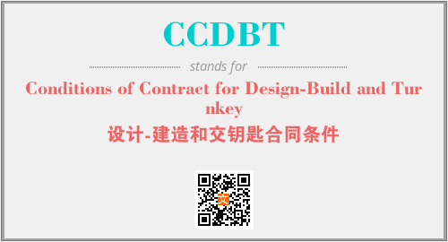上述内容是“Conditions of Contract for Design-Build and Turnkey”作为“CCDBT”的缩写,解释为“设计-建造和交钥匙合同条件”时的信息,以及英文缩略词CCDBT所代表的英文单词,其对应的中文拼音、详细解释以及在英文中的流行度和相关分类、应用领域及应用示例等。