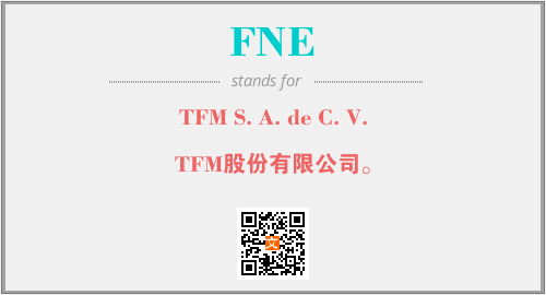 上述内容是“TFM S. A. de C. V.”作为“FNE”的缩写,解释为“TFM股份有限公司。”时的信息,以及英文缩略词FNE所代表的英文单词,其对应的中文拼音、详细解释以及在英文中的流行度和相关分类、应用领域及应用示例等。