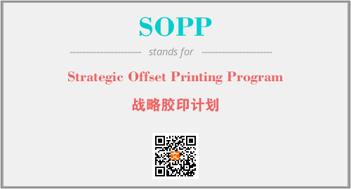英文缩略词“SOPP”经常作为“Strategic Offset Printing Program”的英文缩写来使用,中文表示:“战略胶印计划”。本文将详细介绍英文缩写词SOPP所代表英文单词,其对应的中文拼音、详细解释以及在英语中的流行度。此外,还有关于缩略词SOPP的分类、应用领域及相关应用示例等。