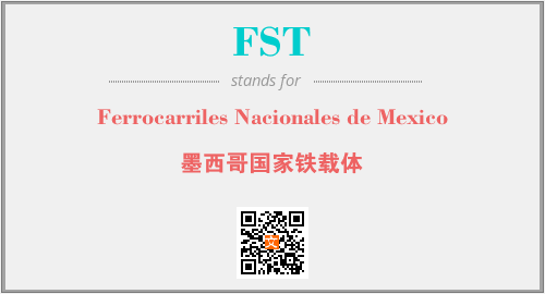 上述内容是“Ferrocarriles Nacionales de Mexico”作为“FST”的缩写,解释为“墨西哥国家铁载体”时的信息,以及英文缩略词FST所代表的英文单词,其对应的中文拼音、详细解释以及在英文中的流行度和相关分类、应用领域及应用示例等。