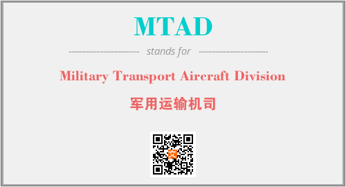 以上为Military Transport Aircraft Division英文缩略词MTAD的中文解释,以及该英文缩写在英语的流行度、分类和应用领域方面的信息。