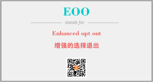 英文缩略词“EOO”经常作为“Enhanced opt out”的英文缩写来使用,中文表示:“增强的选择退出”。本文将详细介绍英文缩写词EOO所代表英文单词,其对应的中文拼音、详细解释以及在英语中的流行度。此外,还有关于缩略词EOO的分类、应用领域及相关应用示例等。