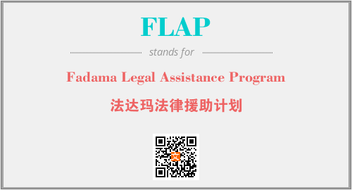 上述内容是“Fadama Legal Assistance Program”作为“FLAP”的缩写,解释为“法达玛法律援助计划”时的信息,以及英文缩略词FLAP所代表的英文单词,其对应的中文拼音、详细解释以及在英文中的流行度和相关分类、应用领域及应用示例等。