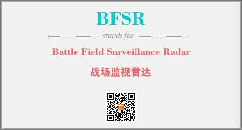 上述内容是“Battle Field Surveillance Radar”作为“BFSR”的缩写,解释为“战场监视雷达”时的信息,以及英文缩略词BFSR所代表的英文单词,其对应的中文拼音、详细解释以及在英文中的流行度和相关分类、应用领域及应用示例等。
