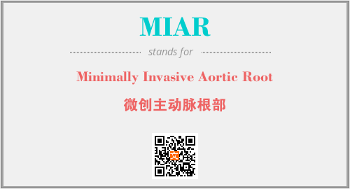 英文缩略词“MIAR”经常作为“Minimally Invasive Aortic Root”的英文缩写来使用,中文表示:“微创主动脉根部”。本文将详细介绍英文缩写词MIAR所代表英文单词,其对应的中文拼音、详细解释以及在英语中的流行度。此外,还有关于缩略词MIAR的分类、应用领域及相关应用示例等。
