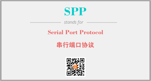 上述内容是“Serial Port Protocol”作为“SPP”的缩写,解释为“串行端口协议”时的信息,以及英文缩略词SPP所代表的英文单词,其对应的中文拼音、详细解释以及在英文中的流行度和相关分类、应用领域及应用示例等。