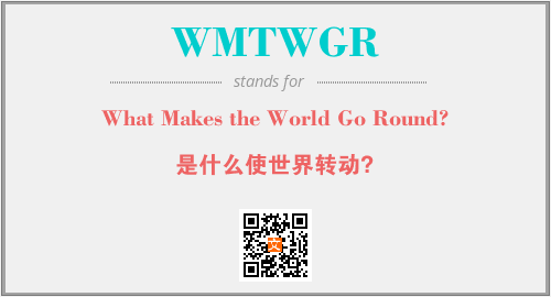 以上为What Makes the World Go Round?英文缩略词WMTWGR的中文解释,以及该英文缩写在英语的流行度、分类和应用领域方面的信息。