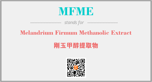 上述内容是“Melandrium Firmum Methanolic Extract”作为“MFME”的缩写,解释为“刚玉甲醇提取物”时的信息,以及英文缩略词MFME所代表的英文单词,其对应的中文拼音、详细解释以及在英文中的流行度和相关分类、应用领域及应用示例等。