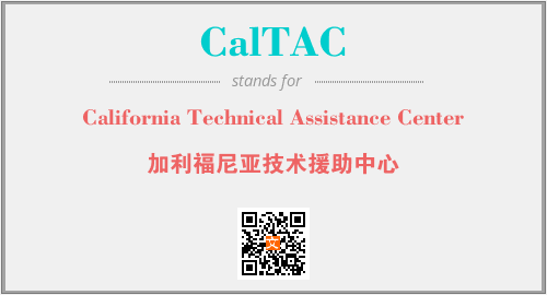 英文缩略词“CalTAC”经常作为“California Technical Assistance Center”的英文缩写来使用,中文表示:“加利福尼亚技术援助中心”。本文将详细介绍英文缩写词CalTAC所代表英文单词,其对应的中文拼音、详细解释以及在英语中的流行度。此外,还有关于缩略词CalTAC的分类、应用领域及相关应用示例等。