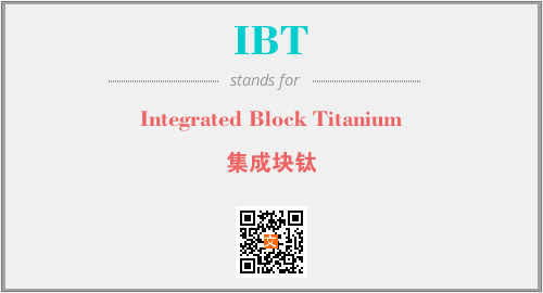 上述内容是“Integrated Block Titanium”作为“IBT”的缩写,解释为“集成块钛”时的信息,以及英文缩略词IBT所代表的英文单词,其对应的中文拼音、详细解释以及在英文中的流行度和相关分类、应用领域及应用示例等。