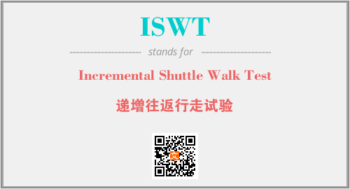 英文缩略词“ISWT”经常作为“Incremental Shuttle Walk Test”的英文缩写来使用,中文表示:“递增往返行走试验”。本文将详细介绍英文缩写词ISWT所代表英文单词,其对应的中文拼音、详细解释以及在英语中的流行度。此外,还有关于缩略词ISWT的分类、应用领域及相关应用示例等。
